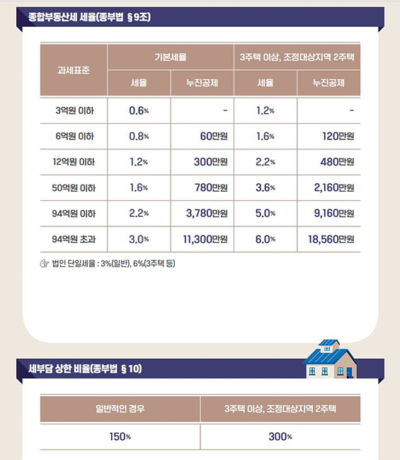 - 종부세 : 공시가격 총합이 일정 기준을 넘는 경우 추가로 부과되는 국세